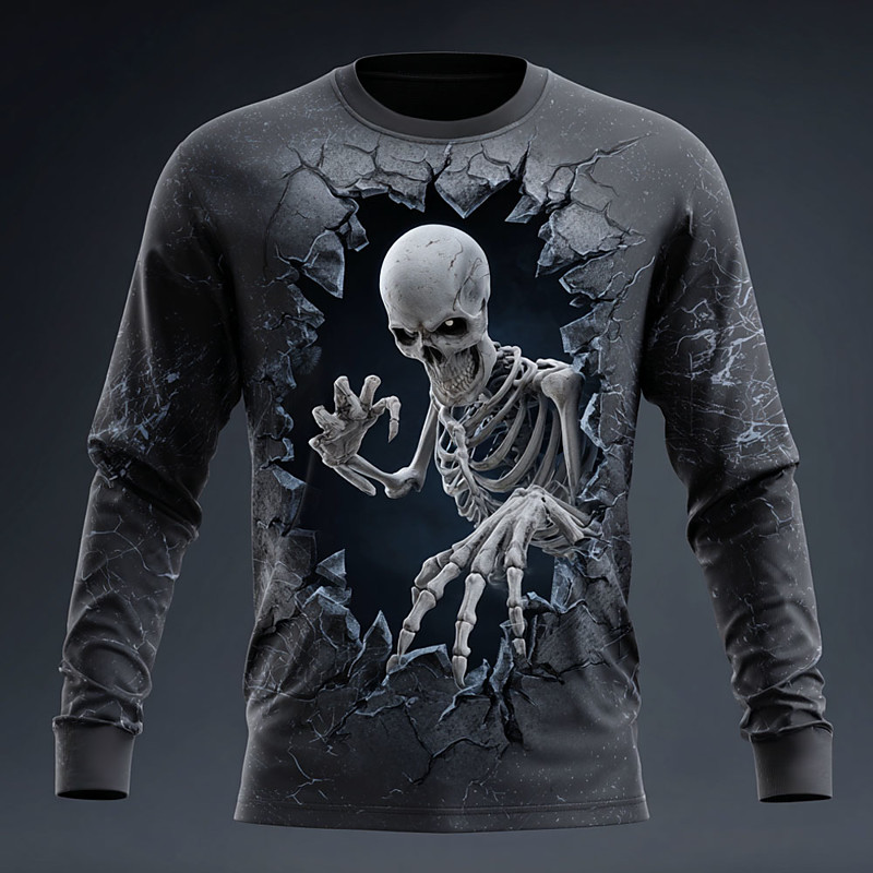 Men's Grim Reaper Skeleton T Shirt Long Sleeve T shirt 3D Print Crew Neck Shirt Fashion Exaggerated Street Casual Daily Yellow Green Dark Blue Summer Spring Fall Clothing Apparel S M L XL XXL XXXL
