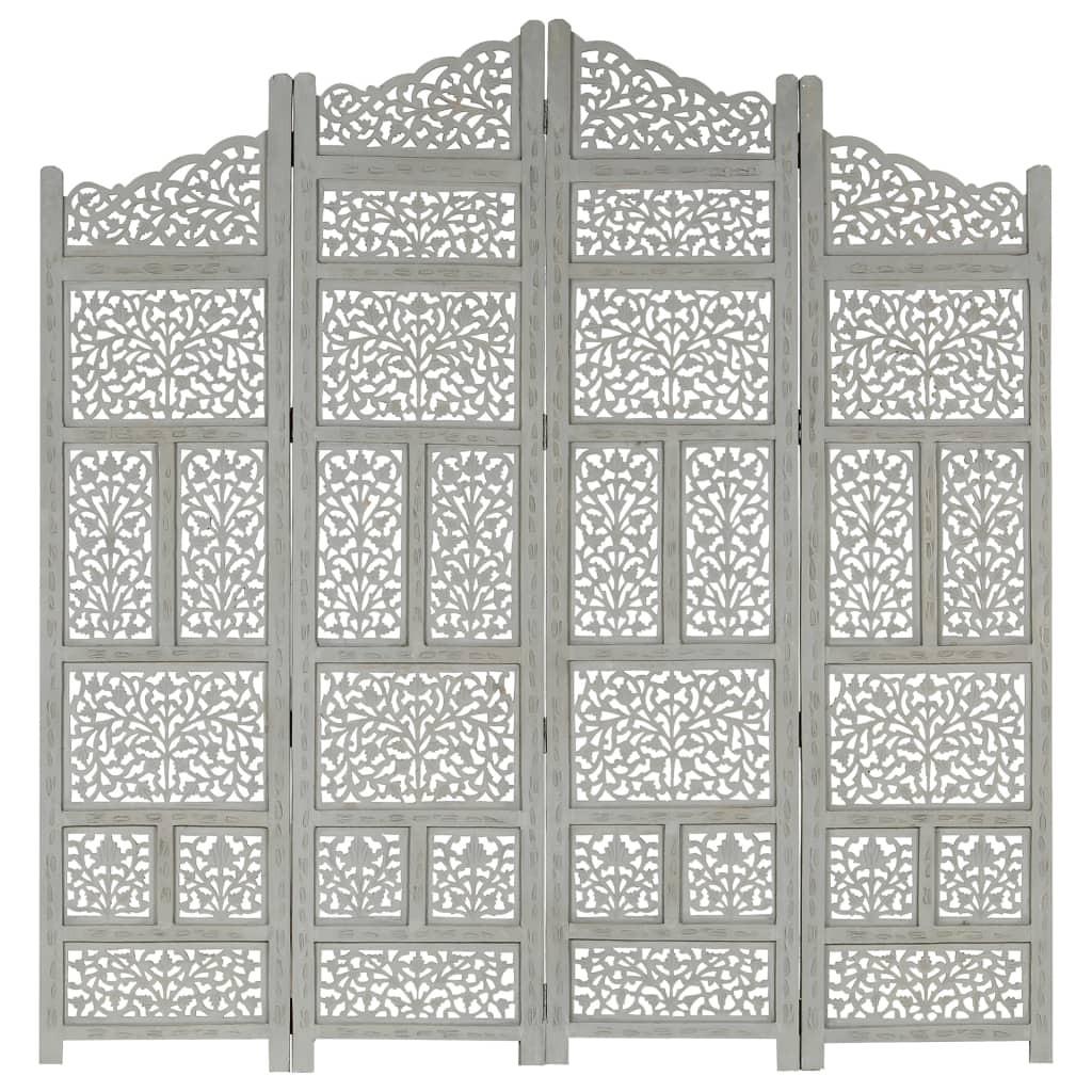 4-panels rumdeler håndskåret 160x165 cm massivt mangotræ grå