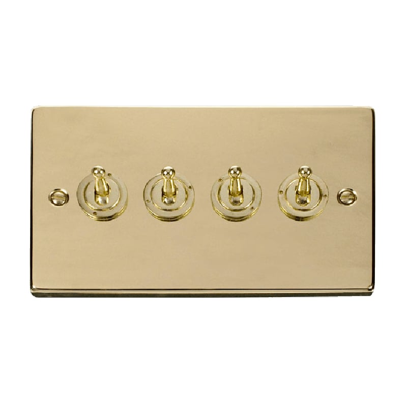 Click Deco 4 Gang 2 Way 10AX Toggle Switch Polished Brass