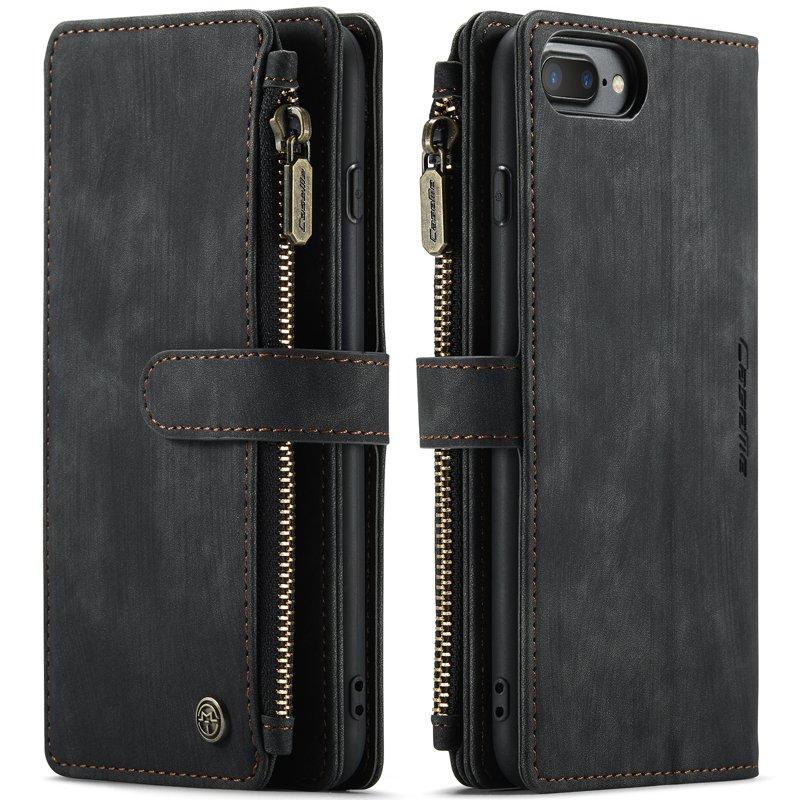 CASEME Konstläder Plånboksfodral för iPhone 6/7/8 Plus med Rem - Svart