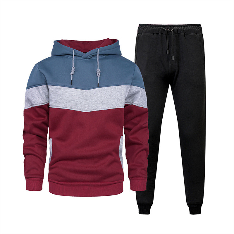 Men's Workout Set Tracksuit Full Zip Hoodie Hoodie Pants Outfit Set Hoodie Hooded Outdoor Daily Sports Pocket Drawstring 2 Piece Color Block Black White Red Polyester Activewear Classic Casual
