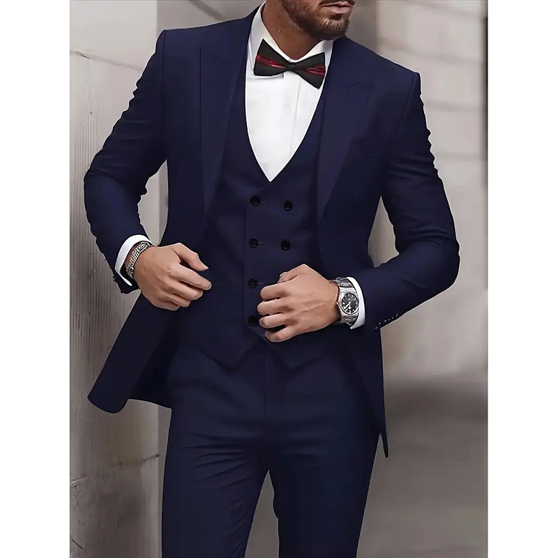 Men's BlazerVestDress Pants Blazer Business Work Wedding Fashion Streetwear Fall Winter Terylene Solid Color 3-Piece Single Breasted Blazer Black Champagne Pink Burgundy