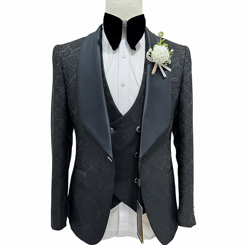 Men's Business Wedding Suits Black Sage Fashion Formal Solid Colored Standard Fit 3 Piece Single Breasted Two-buttons