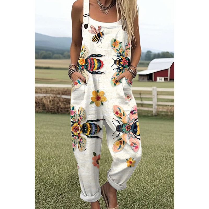 Women's Dungarees Active Floral Sleeveless Sleeveless Straight Square Neck Pocket with Pocket Vacation Daily Loose Fit White Pink Purple Summer