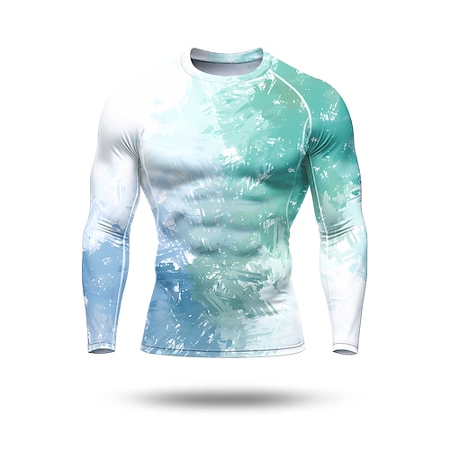 Herren Kompressionsshirt Laufshirt 3D-Druck Langarm Hemd Farbverläufe Schnelltrocknend Kompression Power Flex Feuchtigkeitsableitend Fitnesstraining Aktives Training Übung Sportbekleidung