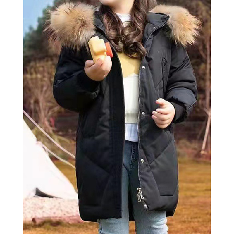 Kids Girls' Down Coat Solid Color Fashion Fur Trim Zipper Pocket School Coat Outerwear 4-12 Years Winter Black Pink Red