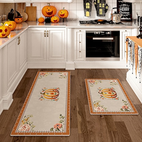 Halloween wasserdichte Küchenmatte mit Seidendruck – rutschfester, verdickter Teppich für die Küche Eingang