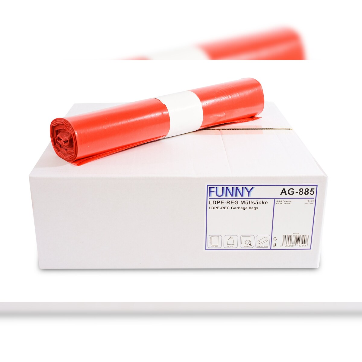 Funny Müllsäcke, rot, 120 Liter, 250 Stück, LDPE-Reg. (10 Rollen á 25 Stück)
