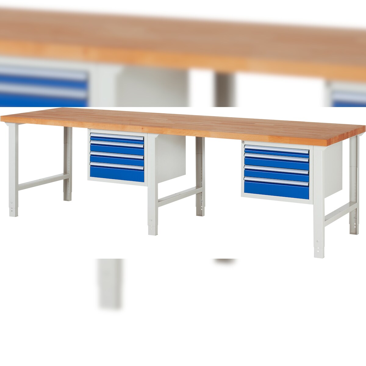 PROREGAL Werkbank Serie 7000 - Modell 7002 | HxBxT 79-114x250x90cm | 4x Schublade | Schubladenmaße 4x150mm | Lichtgrau | Arbeitstisch Werktisch