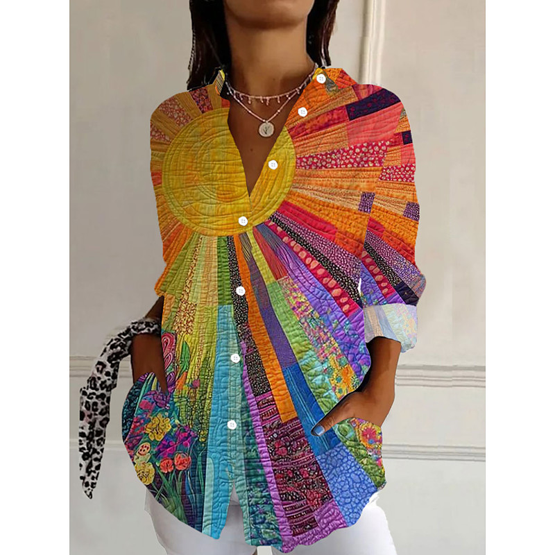 Women's Shirt Button Down Tunic Shirt Collar Long Sleeve Floral Casual Regular Tops Work Daily s Print Pink Red Blue Orange Rainbow Spring Fall