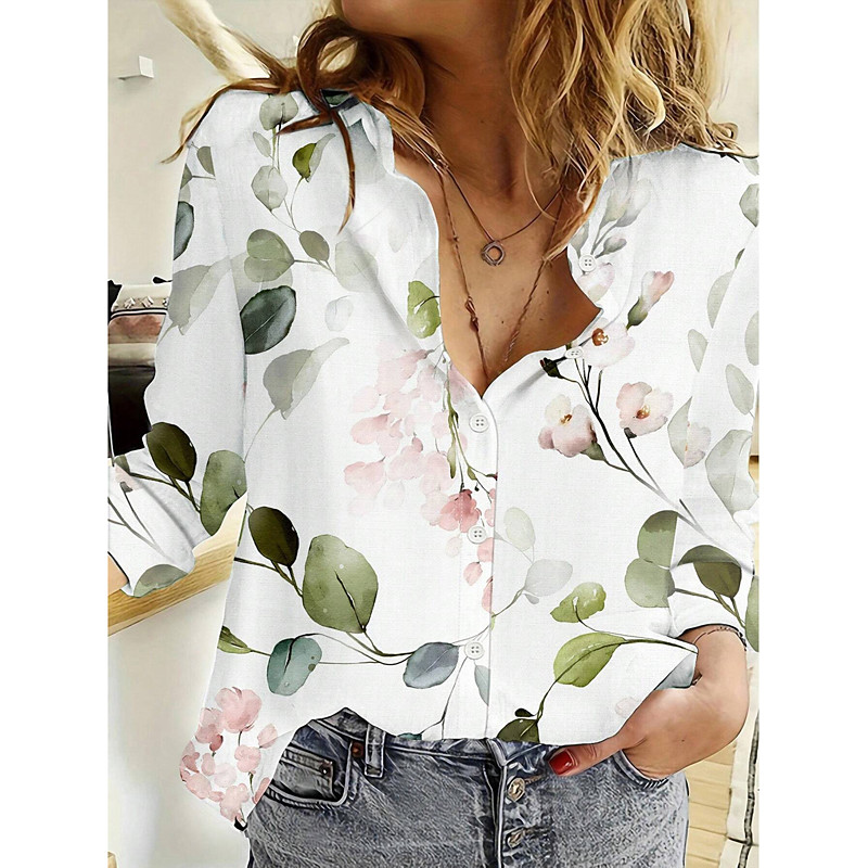 Women's Shirt Button Down Tunic Shirt Collar Long Sleeve Floral Casual Regular Tops Work Daily s Print White Spring Fall Winter