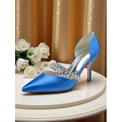 Scarpe da sposa con tacco a spillo in raso blu navy da donna con decorazioni in strass - eleganti scarpe da sposa per occasioni formali e da cocktail