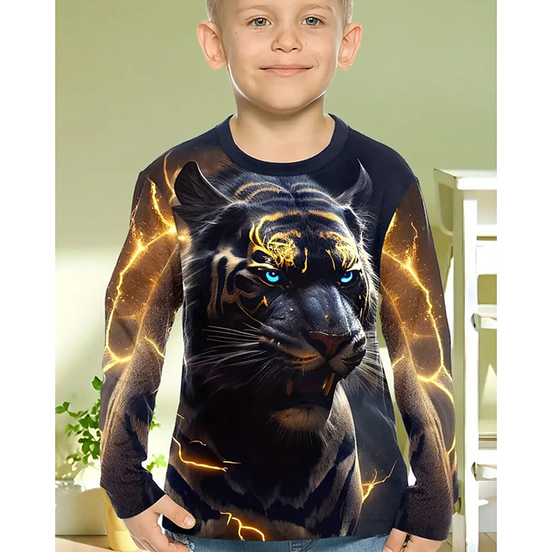 Boys' 3D Graphic Animal Tiger T shirt Tee Long Sleeve Spring Fall Fashion Basic Kids 4-12 Years Crew Neck Outdoor Casual Daily Regular Fit