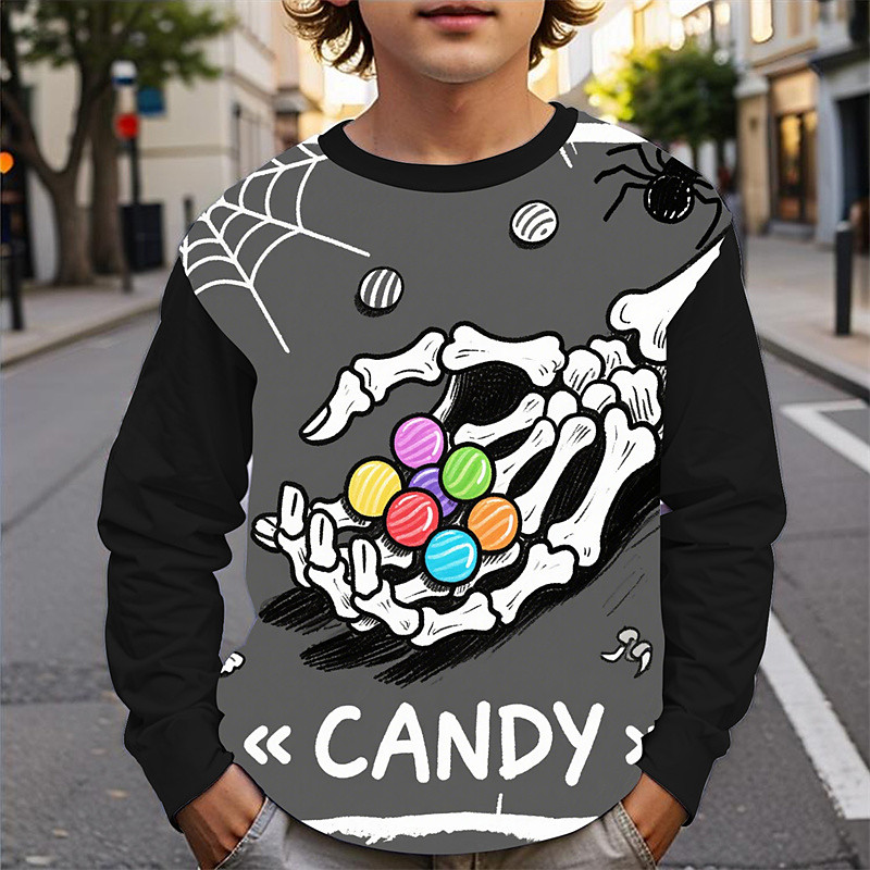 Halloween Boys' 3D Skull T shirt Tee Long Sleeve Spring Fall Fashion Basic Kids 4-12 Years Crew Neck Outdoor Casual Daily Regular Fit