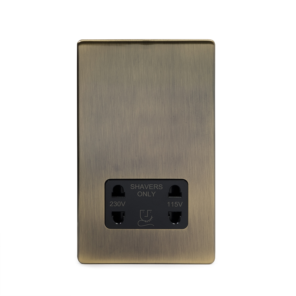 Soho Lighting Antique Brass Shaver Socket Dual Voltage 115/230v Blk Ins Screwless - Size: 86mm x 146mm x 4.5mm