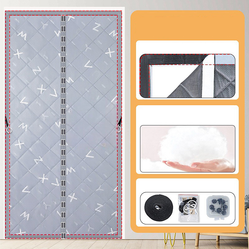Magnetic Fly Screen Door Winter Cotton Door Curtain Thickened Thermal Insulated Windproof Partition for Home Cold Proof Magnetic Closure Draft Stopper Room Divider