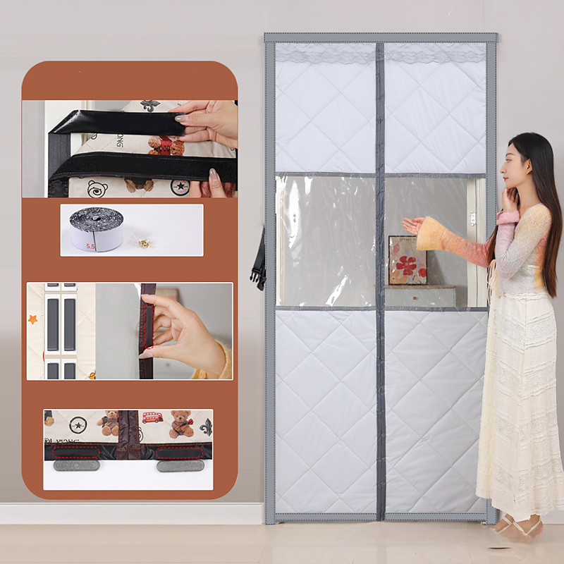 Magnetic Fly Screen Door, Winter Cotton Door Curtain with Window Design, Thickened Thermal Insulated Windproof Partition for Home, Cold Proof Draft Stopper Room Divider