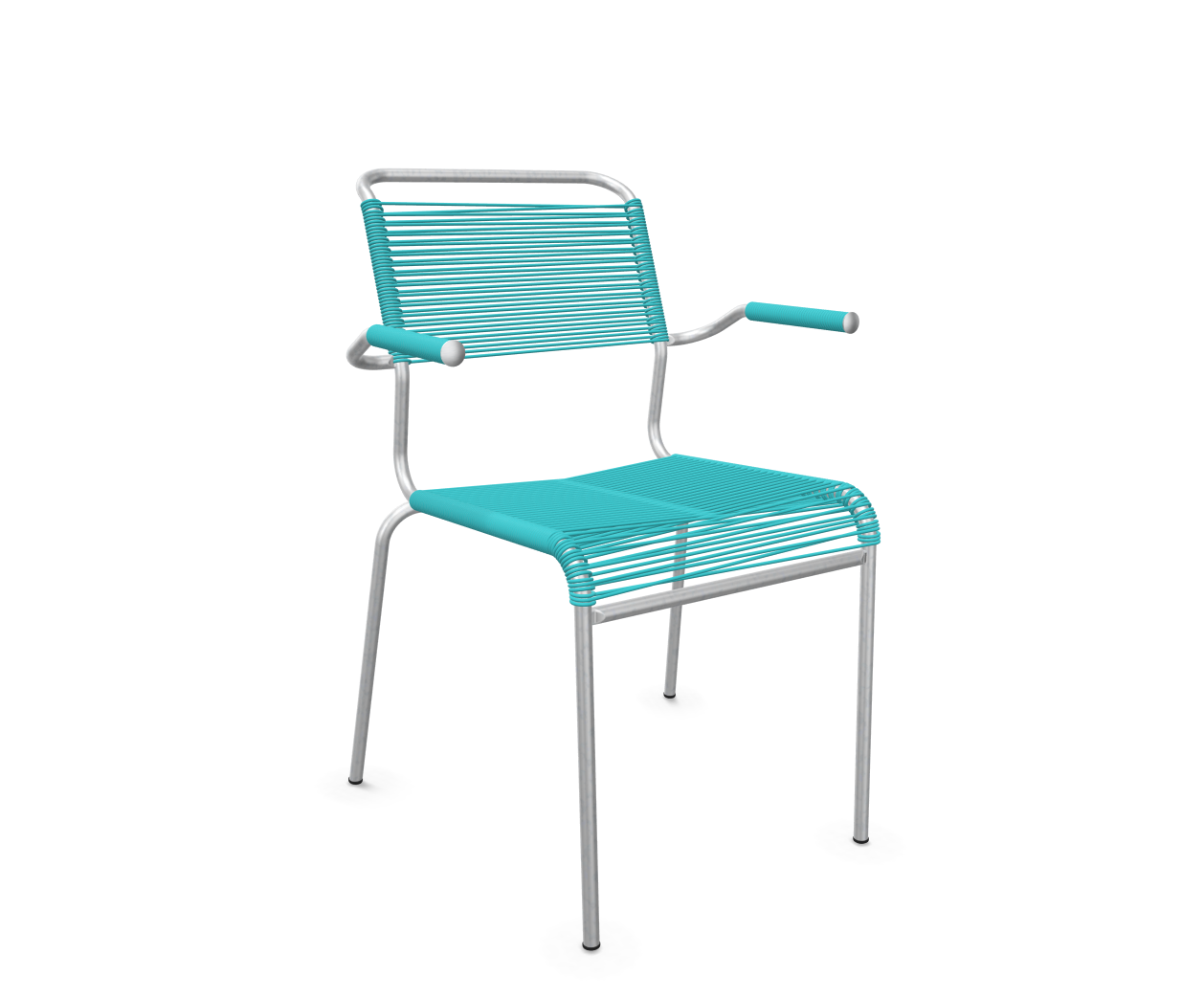 Schaffner Spaghetti-Stuhl Säntis mit Armlehnen Feuerverzinkt Blau | Schubiger Möbel