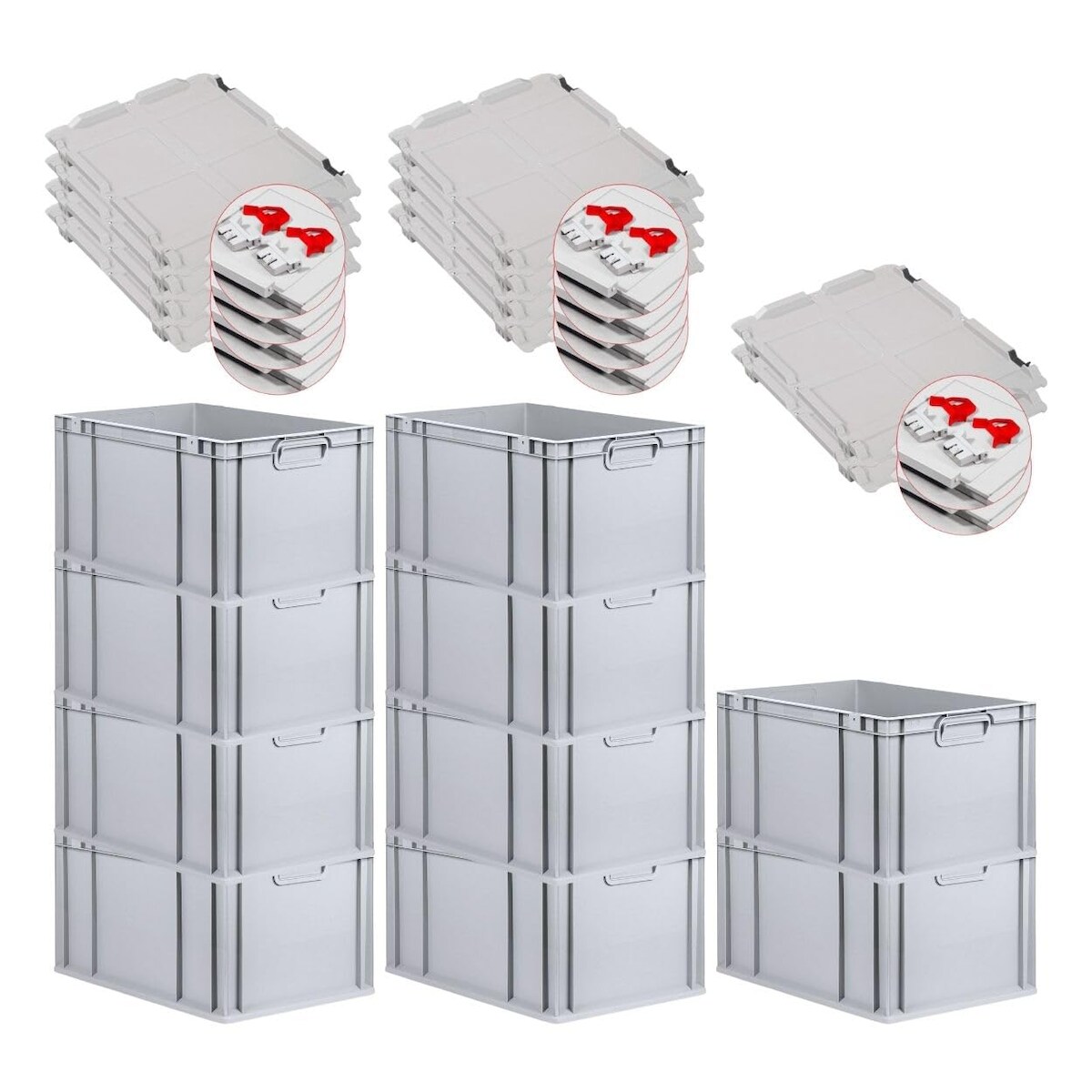 PROREGAL SuperSparSet 10x Eurobox NextGen Economy mit Scharnierdeckel & roten Verschlüssen, Griffe zu, HxBxT 32x40x60cm, 65L, Eurobehälter, Box