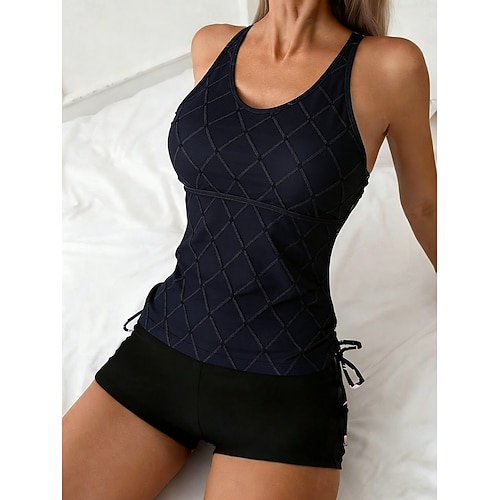 Per donna Costumi da bagno Tankini Due pezzi Birichino Costume da bagno Allacciato Vacanza Abbigliamento da Spiaggia Grafico Geometrico Scollo a V Senza Maniche Costumi da bagno