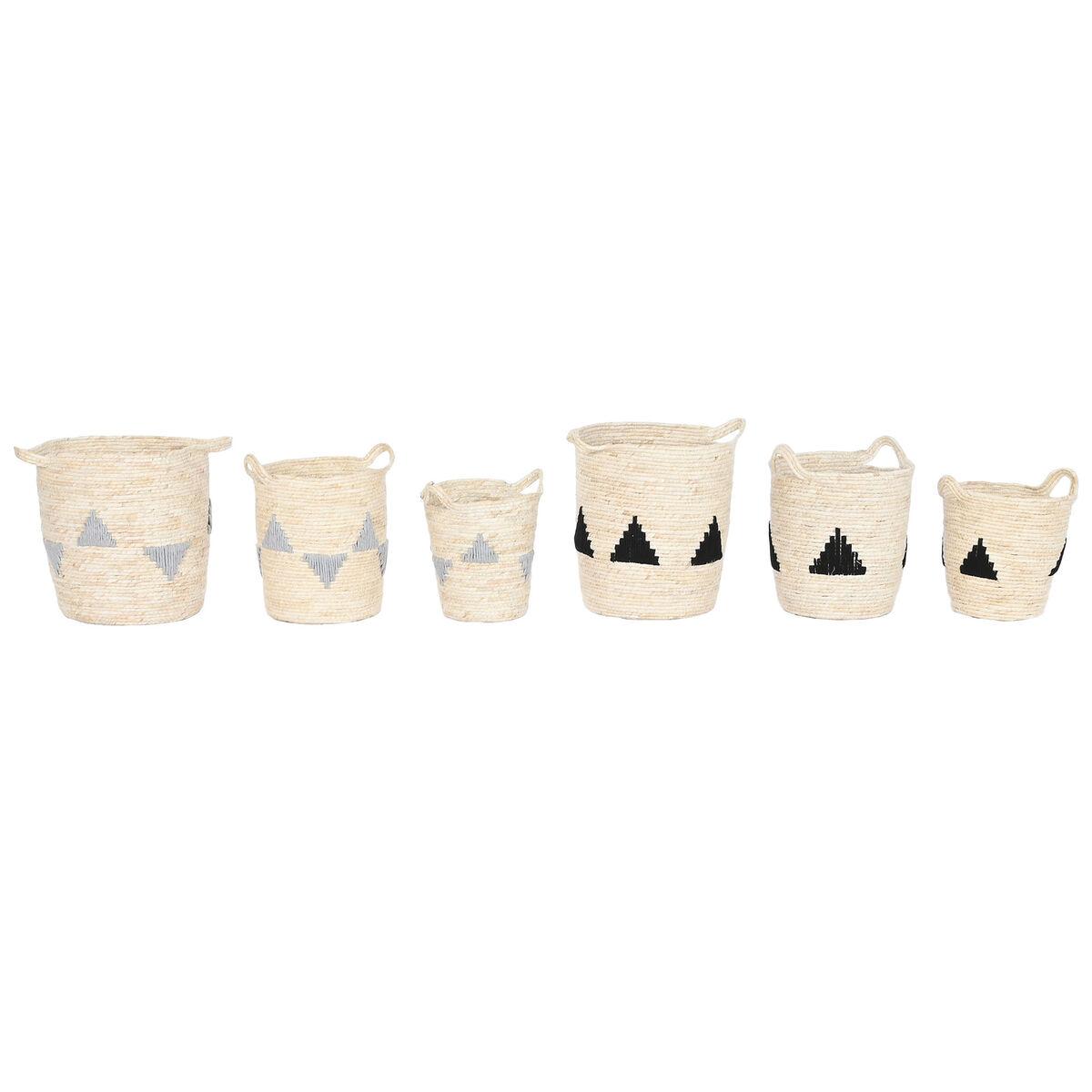 Kurvesæt - boho opbevaringskurve i havgræs, Sort/Grå/Natur, 33 × 33 × 40 cm, 3 dele (2 enheder)