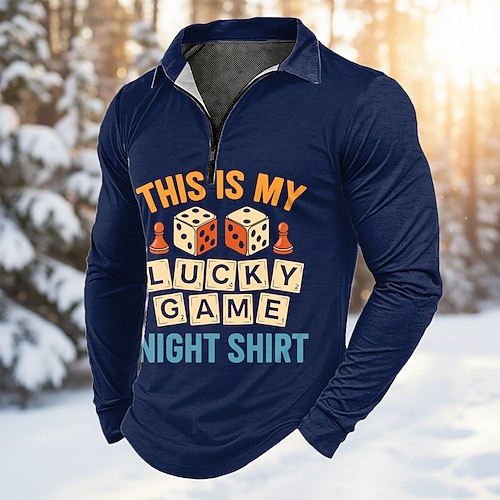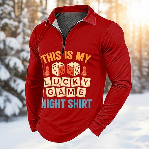 Per uomo Testo Polo con zip Manica Lunga Magliette polo Bavero Casual All'aperto Abbigliamento quotidiano Stampa 3D Primavera Autunno Inverno Blu Rosso Verde
