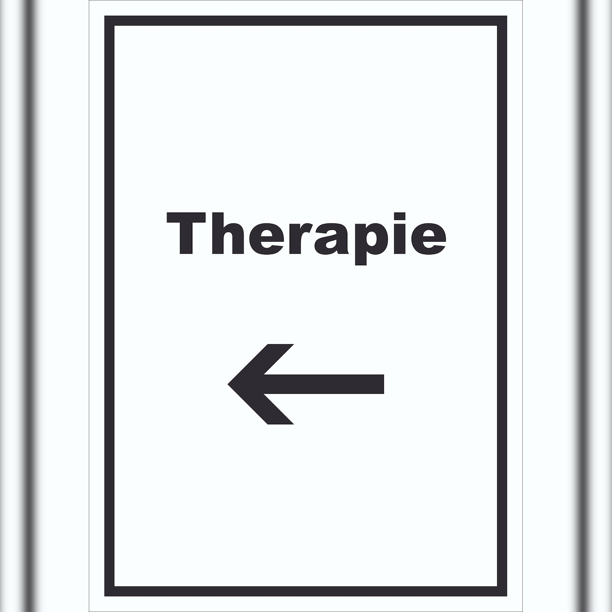 HB-Druck Therapie Schild mit Text und Richtungspfeil links Raum Behandlung hochkant A0 Rückseite selbstklebend