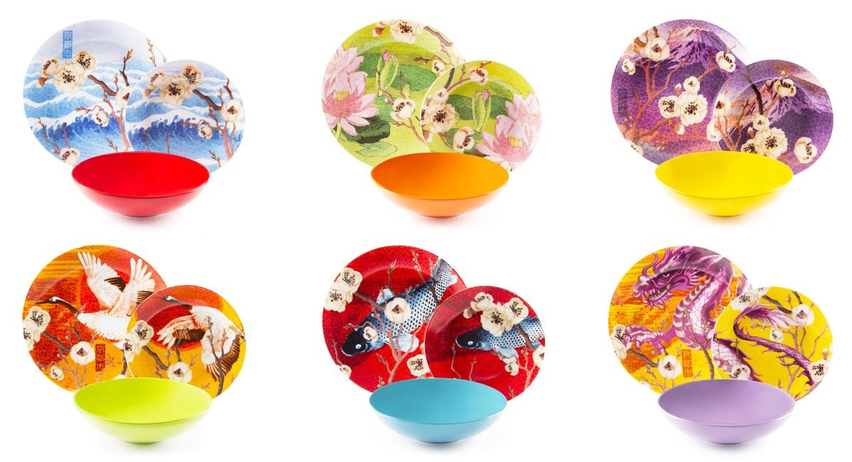 6er Set Speiseteller Uni Bunt