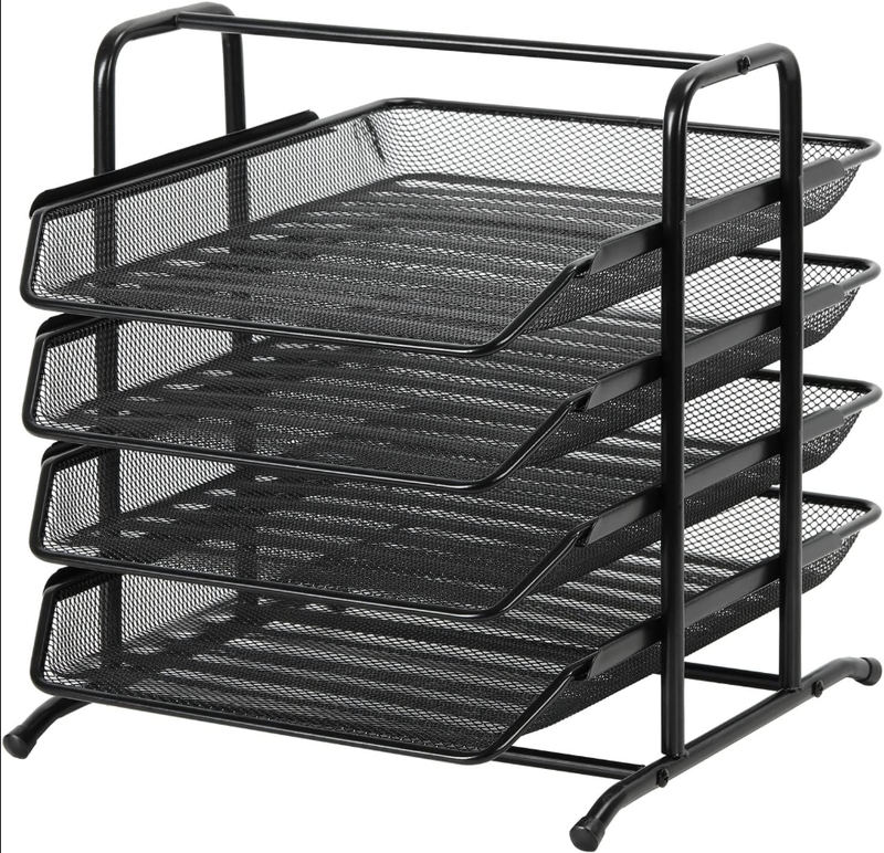 EasyPAG Bac à courrier A4 à 4 niveaux en maille métallique - Noir
