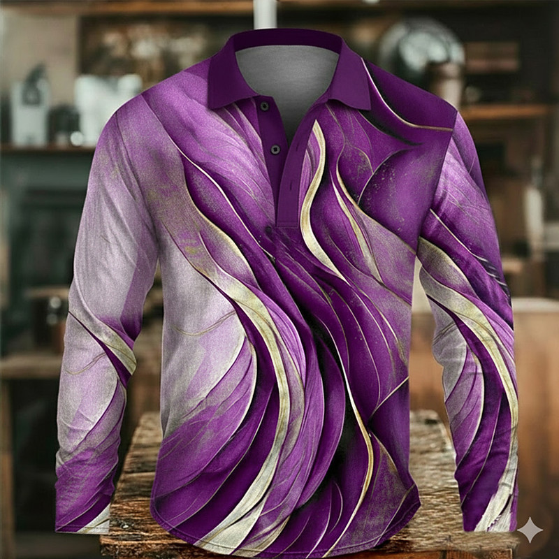 Men's Geometic Line Polo Long Sleeve Polo Shirts Lapel Casual Outdoor Street Athleisure Daily Wear 3D Print Buttons Spring Fall Winter Blue Purple Green