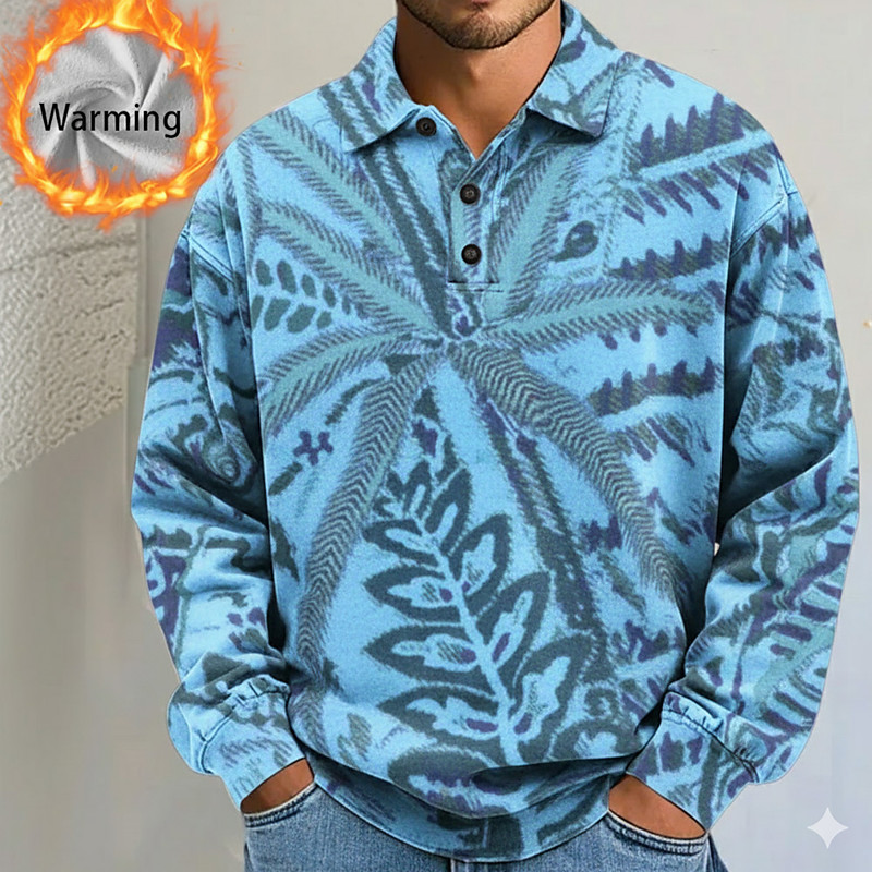 Men's Tree Plants Polo Shirts Themmal Shirts Long Sleeve Polo Shirts Lapel Casual Athleisure Holiday Daily Wear 3D Print Fall Winter Blue Purple Brown