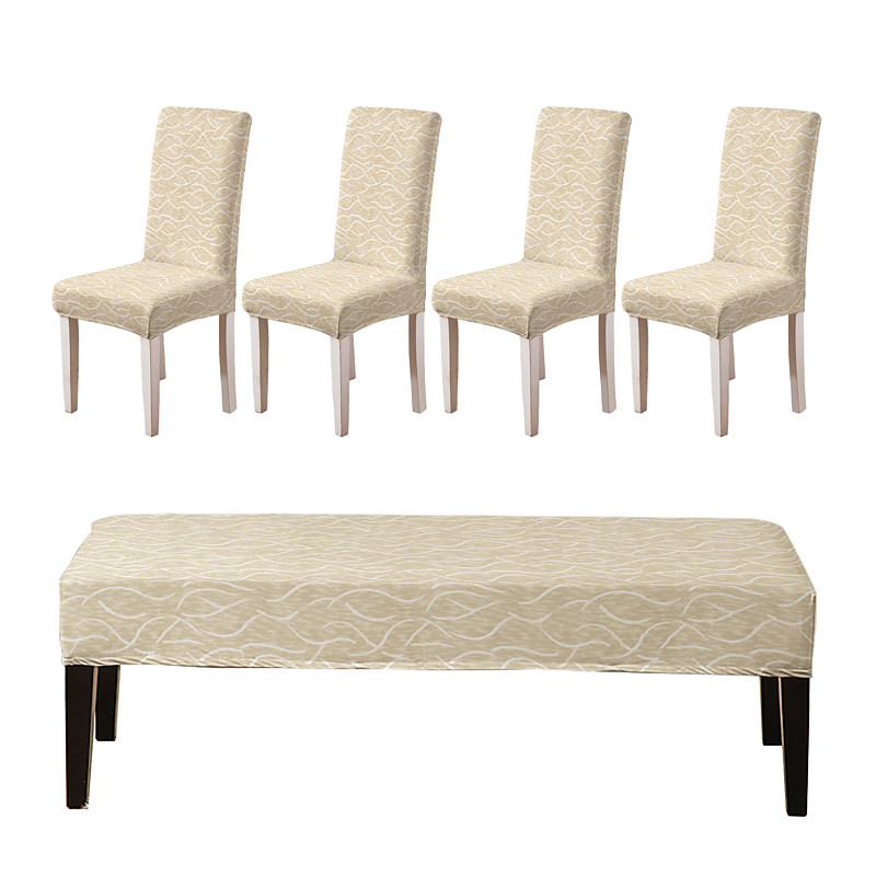 Printed Dining Chair Covers and Bench Covers Sets suitable for dining chairs includes 5 pieces 4 chair covers and 1 bench cover