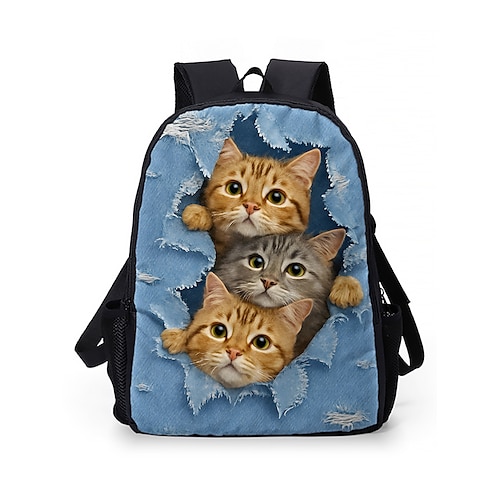 Zaino con stampa di gatto per bambini e adolescenti - stile denim, design a doppio strato, grande capacità, adatto per la scuola o i viaggi
