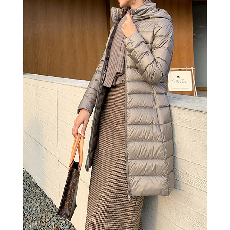 Women's Down Jacket Coat Warm Comfortable Zipper Pocket Fashion Plain Holiday Going out Weekend Zipper Long Hooded Regular Fit Long Sleeve Outerwear Black Pink Khaki Fall Winter