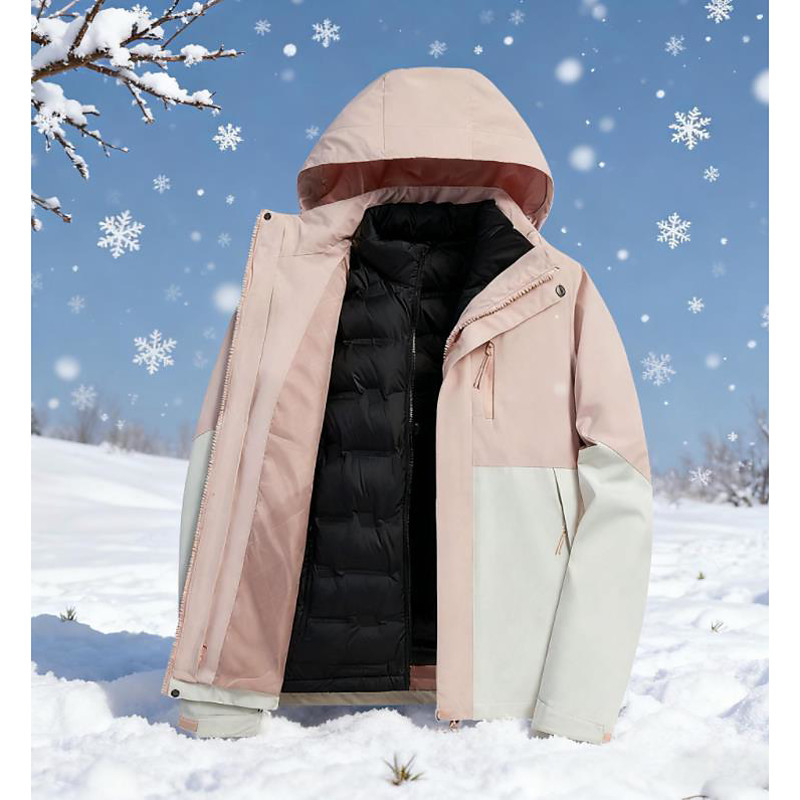Women's 3-in-1WaterproofDownJacket Windproof Comfortable Zipper Pocket Casual Color Block Outdoor Vacation Street Daily Wear Zipper Short Hooded Regular Fit Long Sleeve Outerwear Light Pink Light