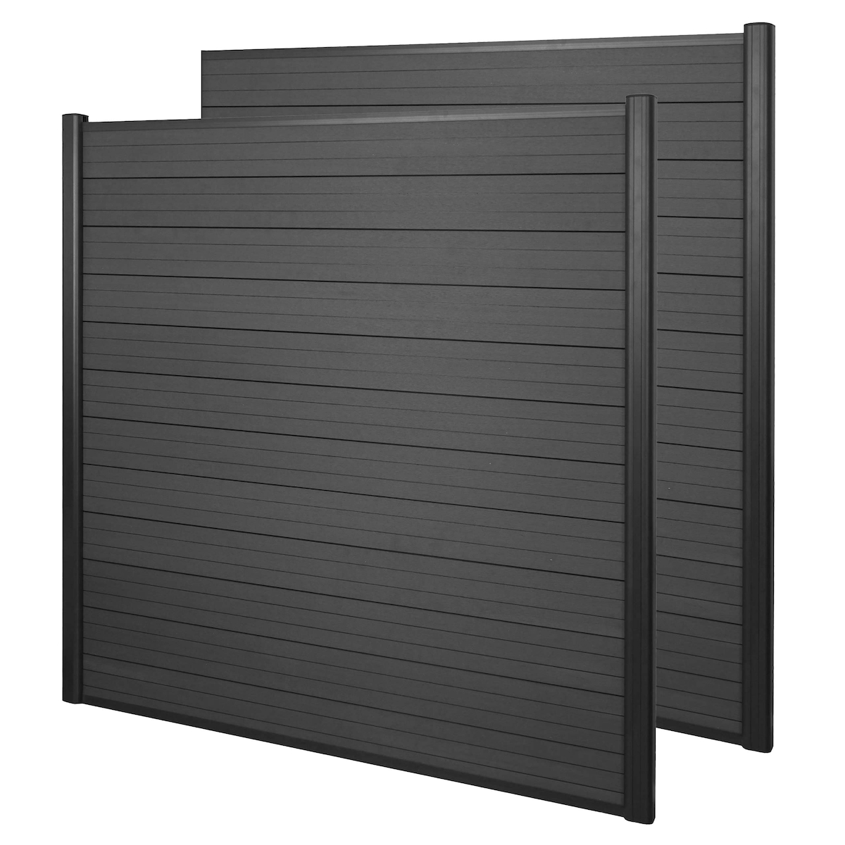 Mendler WPC-Sichtschutz Sarthe, Windschutz Zaun, Alu-Pfosten ~ 2er Set, 3,75m anthrazit