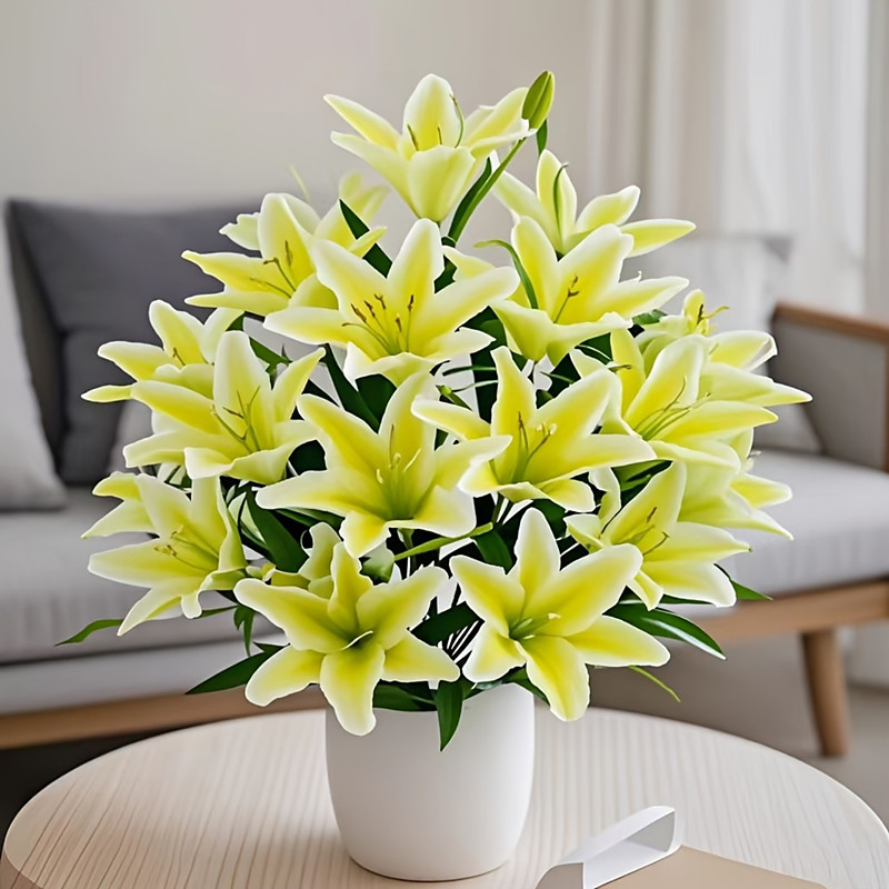 18 Head Artificial Lily Flowers - Elegant Faux Blooms, Perfect for Weddings, Parties, Christmas, Thanksgiving Decorations, Living Room, Bedroom, Dining Table Styling, and Instagram-Inspired Home Decor