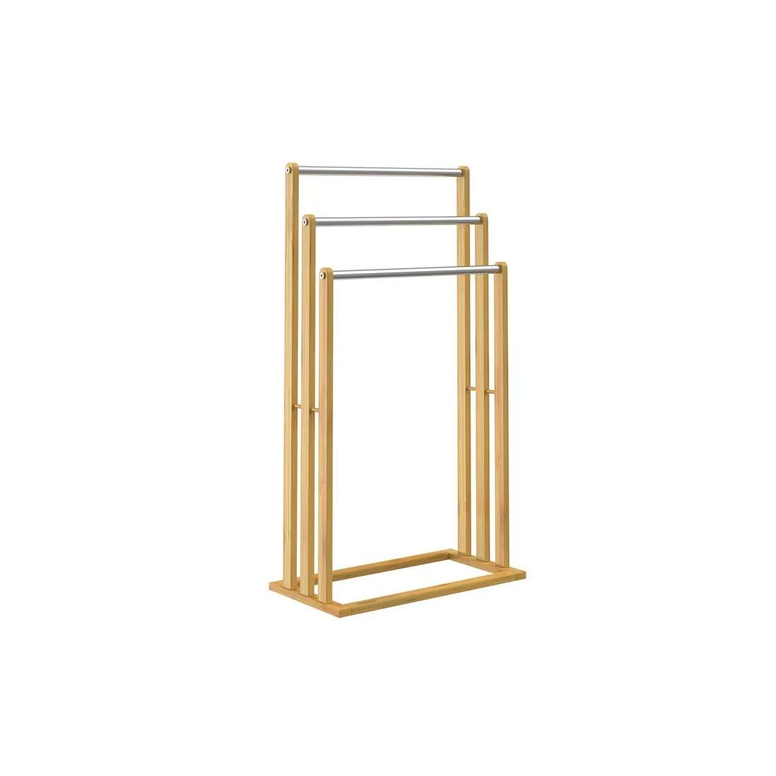 Håndklædestativ i bambus med 3 stænger i rustfrit stål