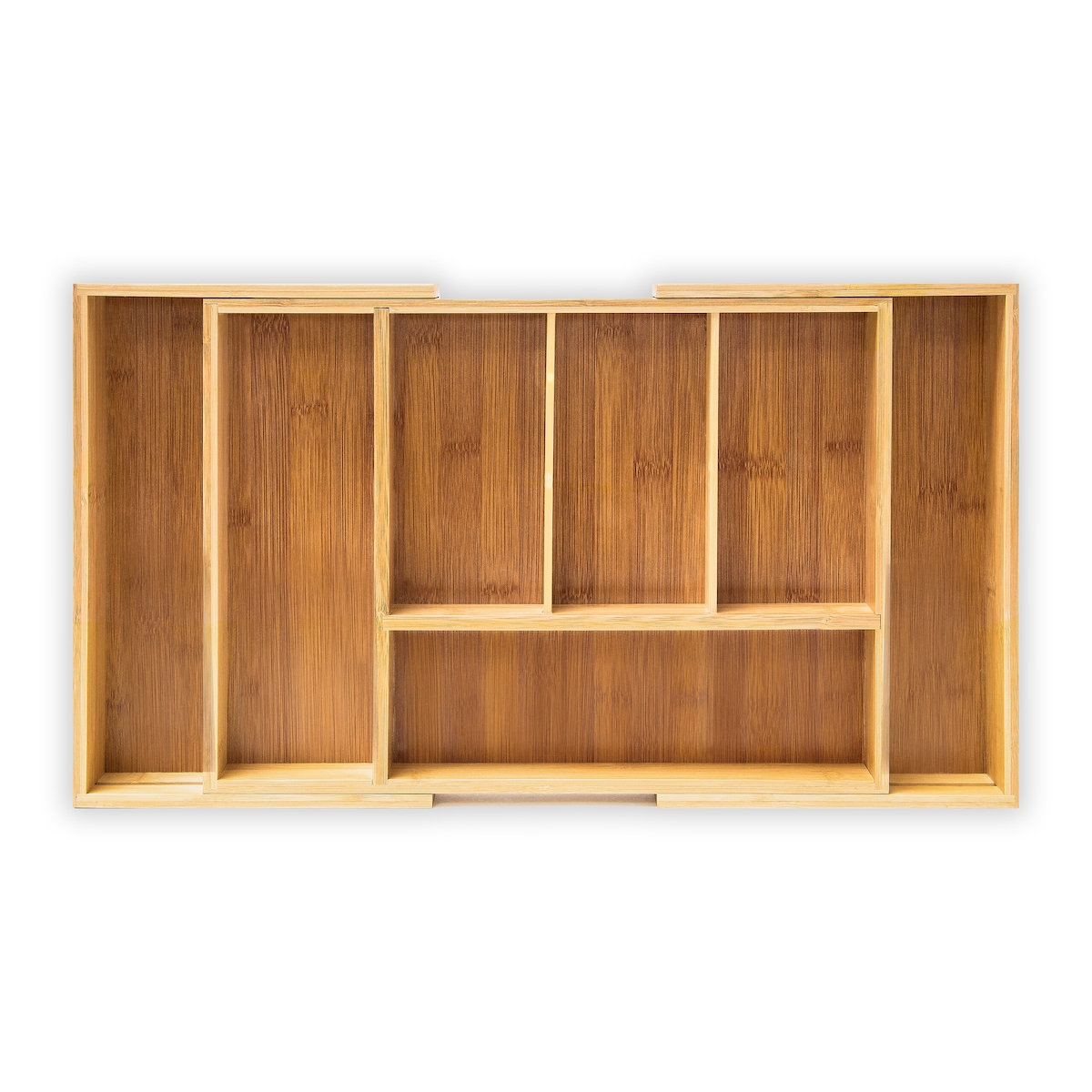 Relaxdays Besteckkasten ausziehbar, HxBxT:5x48,5x28cm, Bambus, 5-7 Fächer, Küchenorganizer, Schubladeneinsatz, natur