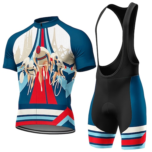 Per uomo Maglia da Ciclismo Maglia da ciclismo con pantaloncini con bretelle Manica Corta Mountain Bike MTB Ciclismo su strada Blu Cartoni animati Bicicletta Resistente ai Raggi UV Cuscinetto 3D