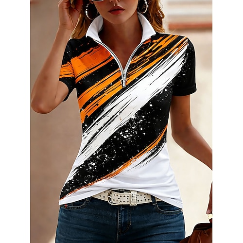 Per donna Maglietta Cerniera Zip a un quarto Grafico Geometrico Blocco di colori Tropicale Hawaiano Elegante Manica Corta Collo Alto Top Regolari Matrimonio in Spiaggia Quotidiano Sportivo Rosa Rosso