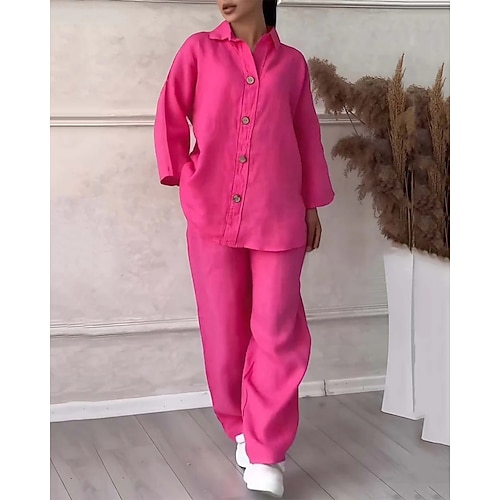 Per donna Moda Streetwear Camicia Set di biancheria in cotone Set di Pantaloni Manica Lunga Colletto a Camicia Semplice Casuale Quotidiano All'aperto Bianco Rosa Verde militare Primavera Vestibilit