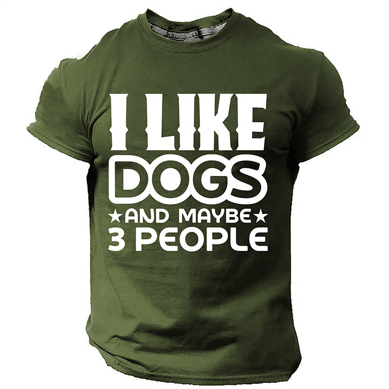 I Like Dogs And Maybe 3 People Funny Men's Graphic T-Shirt Short Sleeve Dog Lover Tee