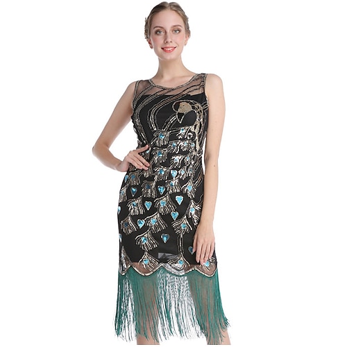 Retrò Vintage Anni Ruggenti Anni 1920 Lunghezza al ginocchio Abito Flapper Senza maniche Il grande Gatsby Paillettes Frange Tubino / Colonna Scollo Tondo Costume Per donna Natale Carnevale Mascherata