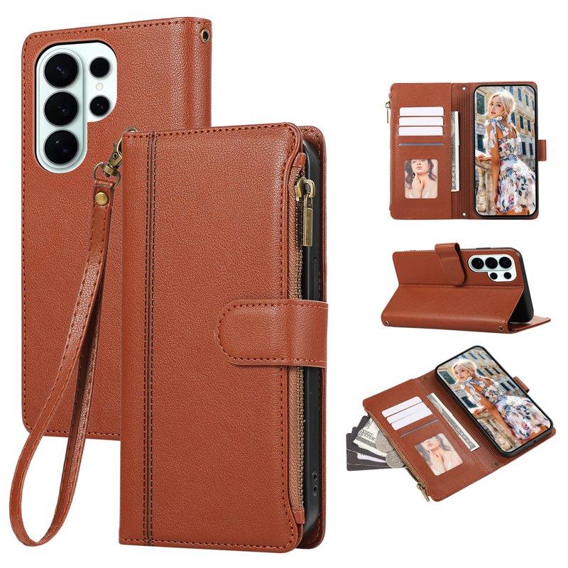 Plånboksfodral för Samsung Galaxy S26 Ultra Konstläder med handledsrem - Brun
