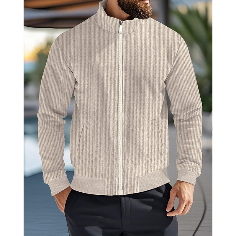 Men's Corduroy Jacket Casual Jacket Vacation Daily Breathability Pocket Fall Winter Plain Fashion Classic Standing Collar Regular Apricot Black Navy Blue Light Grey Army Green Jacket
