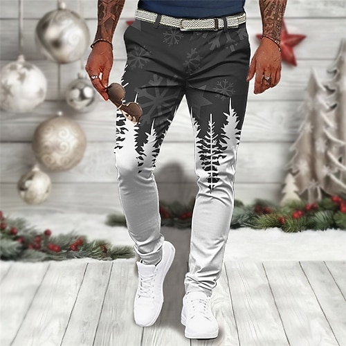 pantaloni da uomo con stampa albero di natale pantaloni casual da lavoro con stampa 3d pantaloni da esterno abbigliamento quotidiano streetwear poliestere blu vino arancione s m l pantaloni elastici