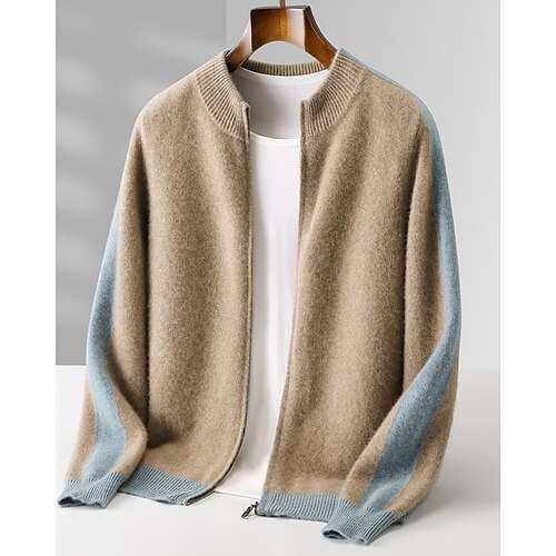 maglione cardigan da uomo in pura lana e cashmere di alta qualità, classico, con cerniera, in maglia, morbido, caldo e traspirante.
