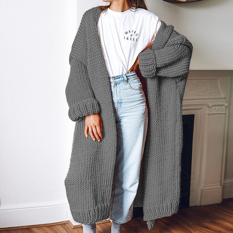 Women's Sweater Cardigan Streetwear Casual Solid Color V Neck Knitted Long Sleeve Long Tops Knit Daily Holiday Going out Wine Red Black Fall Winter