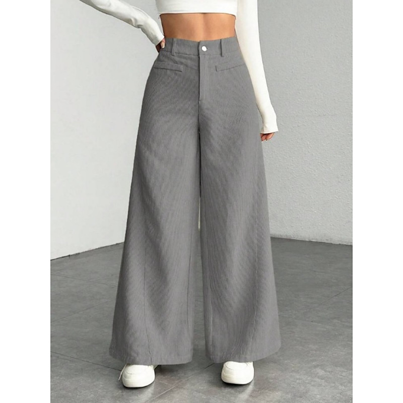 Women's Wide Leg Dress Pants Streetwear Casual Full Length Natural Plain Pocket Elastic Waist Comfortable Work Business Grey Navy Black White Fall Regular Fit